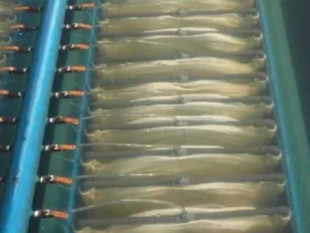 在市政污水處理領域,多采用中空纖維膜和平膜。 中空纖維膜多由孔徑為0.082.0um的PP(聚丙烯)制成。 平膜多由孔徑大小的PVDF(聚偏二氟乙烯)制成。 為0.03~10um。 無論是中空纖維膜還是平膜,生物池中的污泥濃度一般不超過10g/L,因此很少用于處理高濃度垃圾滲濾液。