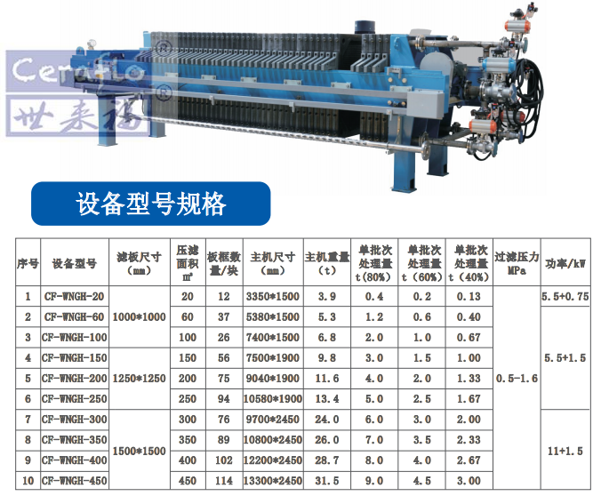 2、采用特殊橡膠濾板、含水率一次降至 40%以下